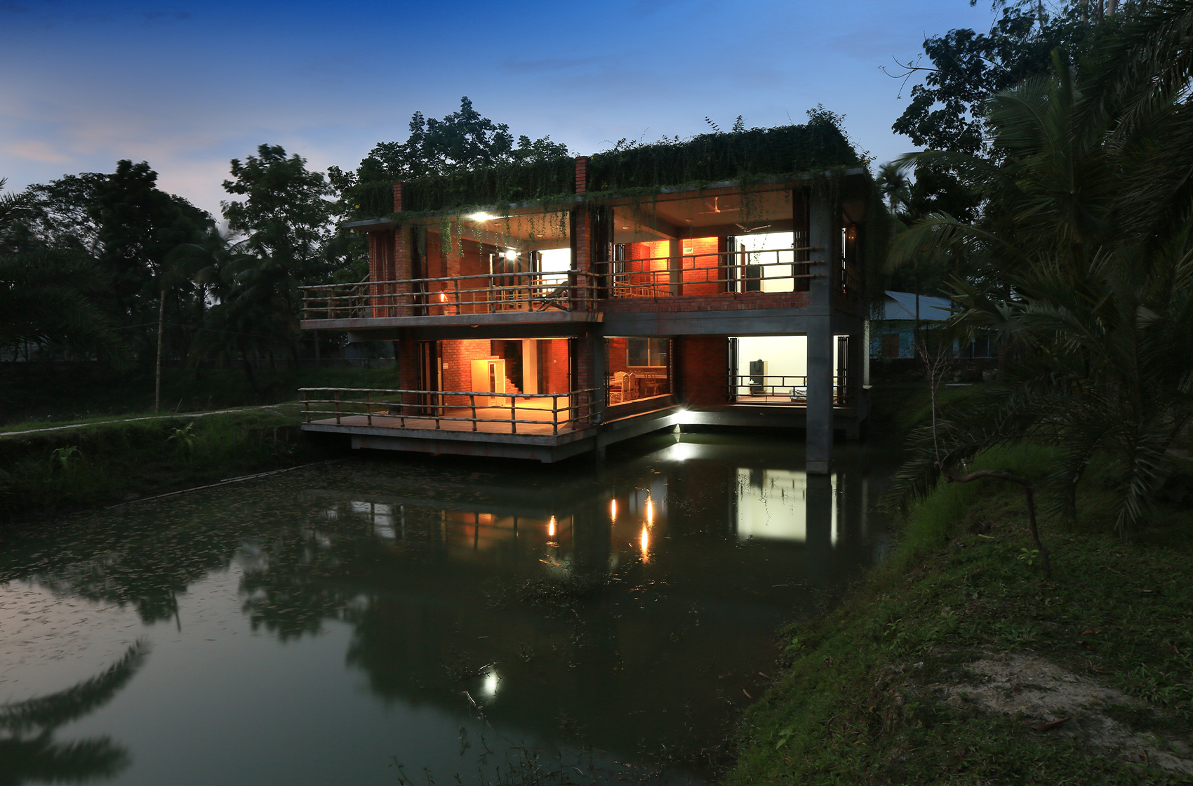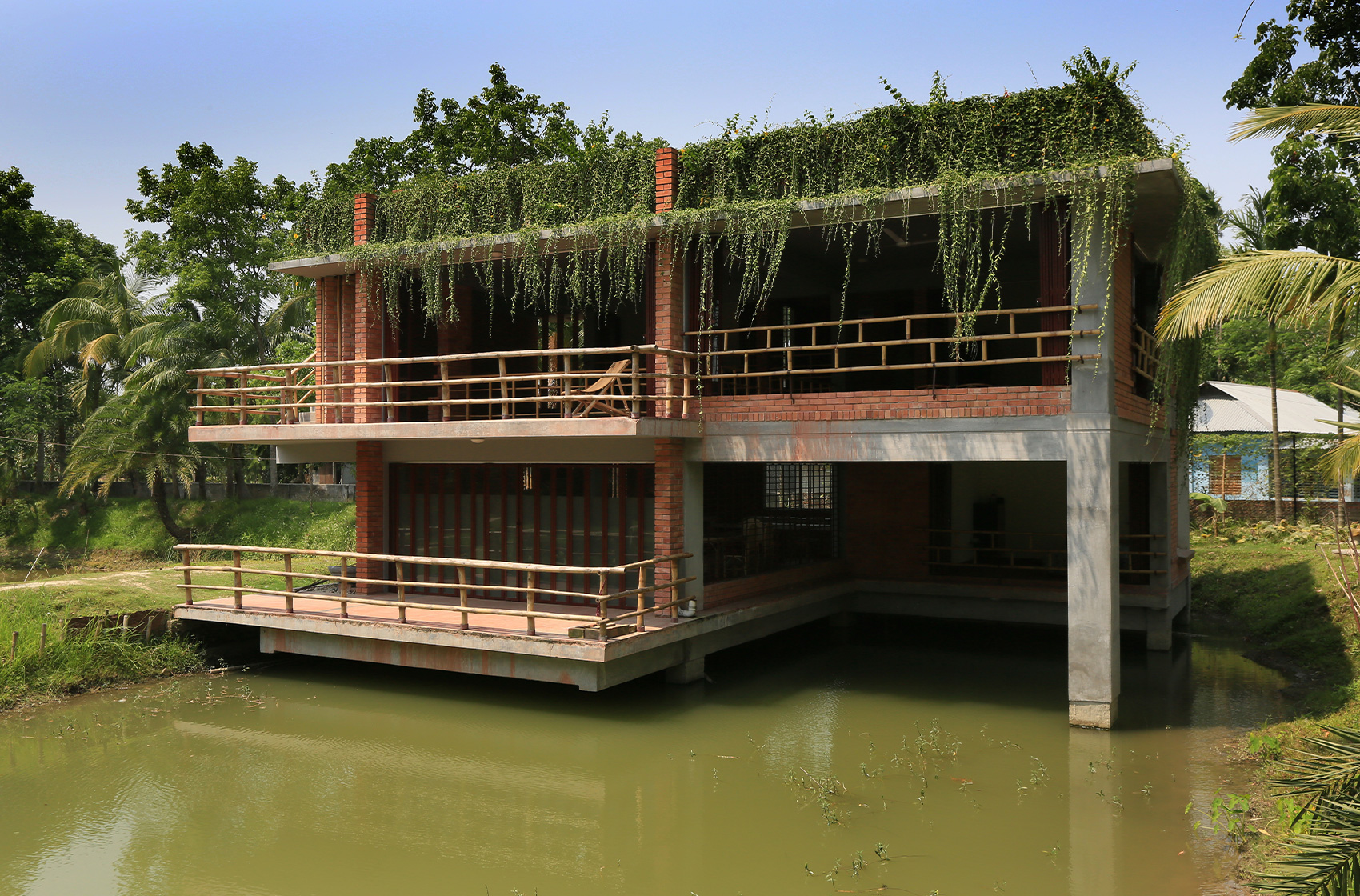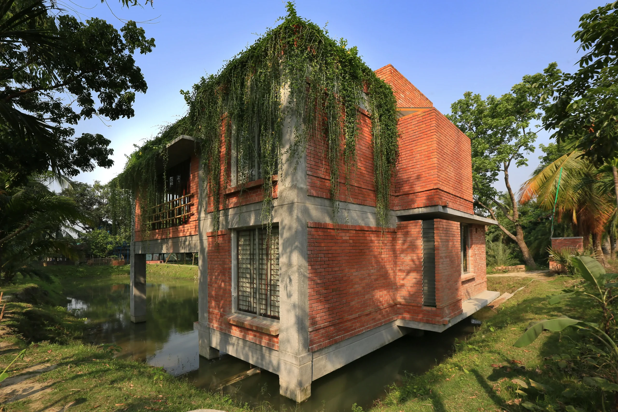 A serene retreat set over a water body, this project features three bedrooms, a living area, and innovative design elements to ensure natural ventilation and stunning views, providing a peaceful escape from city life.